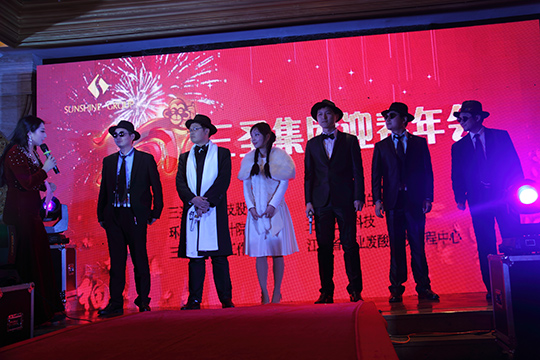 這次春年會分為兩大階段,第一階段,以一場"追憶時光表演秀",凸顯"環保、勤儉的三圣人,用風采演繹你的夢"的年會主題,共有八個表演團隊充分展示了各自的風采,并參加了現場評選。最終,財務部表演團隊表演的走秀舞臺劇《熱血青年》,以清新靚麗的造型、跌宕起伏的情節和精雕細琢的道具在評選中拔得頭籌,獲得特等獎;行政人事部表演團隊表演的動漫情景劇《熊出沒》,以鮮明的環保理念、可愛的卡通造型、完美的表演藝術贏得好評,獲得一等獎;其余六個節目分獲了二、三等獎和新意節目貢獻獎。