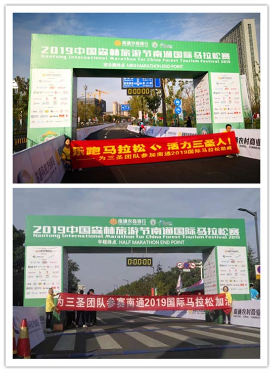 2019中國森林旅游節南通國際馬拉松在南通體育會展中心南大門正式開跑!南通瞬間成為全世界最熱鬧的城市之一!此次國際馬拉松賽是南通首次舉辦國際馬拉松賽,也是南通有史以來舉辦的規模最大、人員最多的體育賽事。上萬運動愛好者集結于此,一場展現毅力與勇氣的戰斗開啟.南通三圣企業集團組織參賽人員與來自全國各地和肯尼亞、德國、英國等20多個國家和地區近15000名選手同場競技,用奔跑共同迎接即將到來的2020年.激情洋溢的三圣跑團、以及熱情奔放的三圣拉拉隊成為賽場上一道亮麗的風景線。