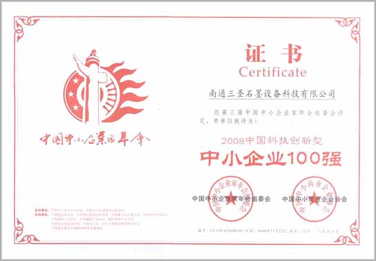 經第三界中國中小企業家年會組委會評定,我公司被評定為:2008中國科技創新型中小企業100強