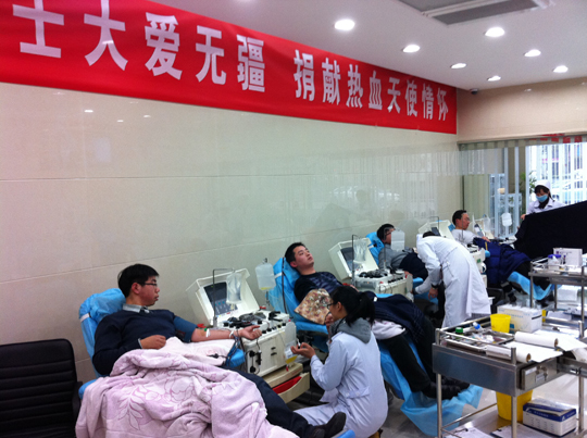 1月19日,患病同事趙亞東的家屬向公司發出了緊急求援,希望能有同事為趙亞東定向捐獻成分血。短短的半小時,質檢部劉小冬、朱浩,國際部石玉成,事務部嚴建新在殷總的帶領之下迅速趕到市血站下屬的愛心獻血屋獻血。雖然遺憾的是,由于捐獻成分血對捐獻人的各項身體指標要求較高,五人均未達到要求,但他們的善舉仍然讓趙亞東的家屬非常感動。與此同時,公司、工會、愛心基金會聯合發出了為趙亞東獻血倡議,率先得知消息的科室員工積極響應,紛紛簽字響應獻血倡議,稍后得知消息的生產部員工也是積極響應,紛紛表示愿意為趙亞東獻血,甚至考慮到春節期間的用血。